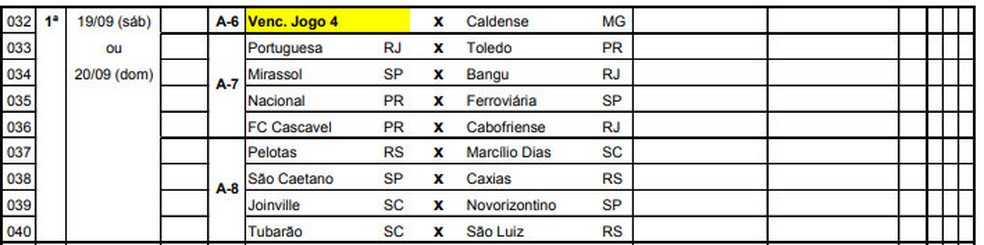 Grupo 8: Pelotas (RS), Marcílio Dias (SC), São Caetano (SP), Caxias (RS), Joinville (SC), Novorizontino (SP), Tubarão (SC), São Luiz-RS.